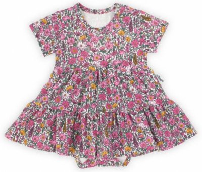 Bavlněné šaty s mašličkou, dl. rukáv, Luční kvítky, Mamatti, bílá s