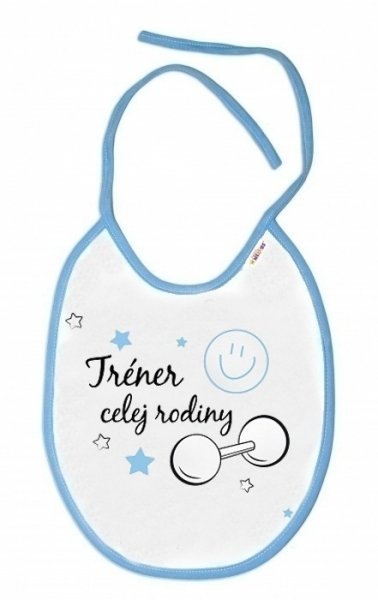 Baby Nellys Nepromokavý bryndáček Trenér celej rodiny, 24 x 27 cm, kluk - bílá/modrá