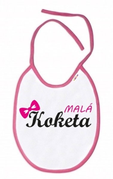 Baby Nellys Nepromokavý bryndáček Malá Koketa, 24 x 27 cm-bílý s růžovým lemem