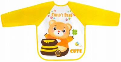 BocioLand Zástěrka, bryndák nepromakavý s dlouhým rukávem, Medvídek, žlutá