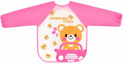 BocioLand Zástěrka, bryndák nepromakavý s dlouhým rukávem, Méďa, růžová