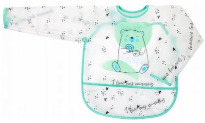 AKUKU Bryndáček, zástěrka nepromakavý s kapsičkou a dl. rukávem Medvěd - zelený