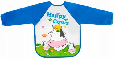BocioLand Zástěrka, bryndák nepromakavý s dlouhým rukávem, Happy Cows, modrá