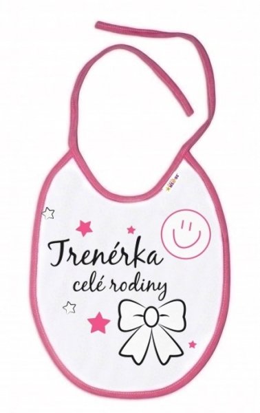 Baby Nellys Nepromokavý bryndáček Trenérka celé rodiny, 24 x 27 cm - růžový