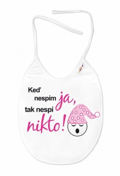 Baby Nellys Nepromokavý bryndáček Keď nespím ja, tak nespí nikto, 24 x 27 cm - bílý