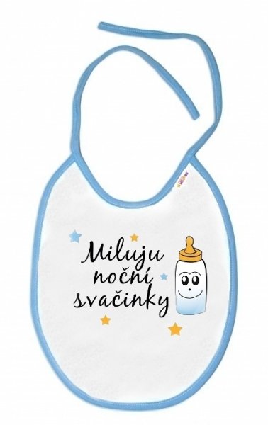 Baby Nellys Nepromokavý bryndáček Miluju noční svačinky, 24 x 27 cm - bílý s modrým lemem