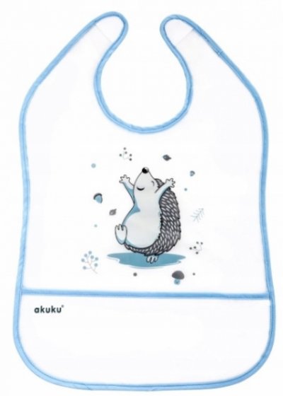 AKUKU Bryndáček, zástěrka nepromakavý s kapsičkou Ježek - modrý