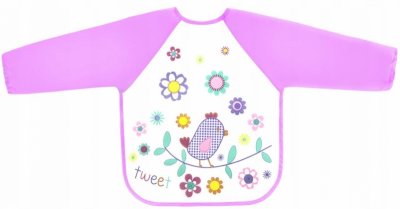 BocioLand Zástěrka, bryndák nepromakavý s dlouhým rukávem, Ptáček, lila