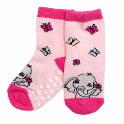 Dětské ponožky s ABS Slůně - růžové - 19-22
