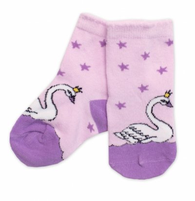 Dětské bavlněné ponožky Labuť - lila - 15-18