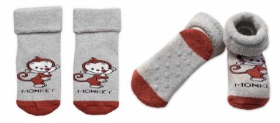 Kojenecké froté ponožky s ABS Monkey, Baby Nellys, šedé - 56-62 (0-3m)