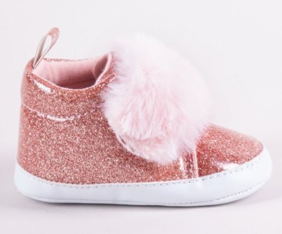 YO ! Kojenecké boty/capáčky lakýrky Girl s kožešinou - růžový