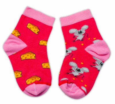 Baby Nellys Bavlněné veselé ponožky Myška a sýr - tmavě