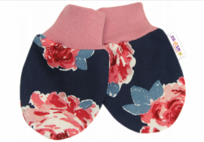 Baby Nellys Kojenecké rukavičky Růže - pudrové/granát - 56 (1-2m)