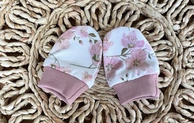 Kojenecké rukavičky Mamatti, Květy višní - smetanovo/pudrové