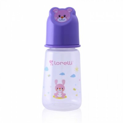 Kojenecká lahvička Lorelli 125 ml s víkem ve tvaru zvířete VIOLET