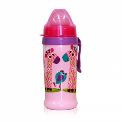 Netekoucí láhev Lorelli s pítkem 360 ml, klip ZOO PINK