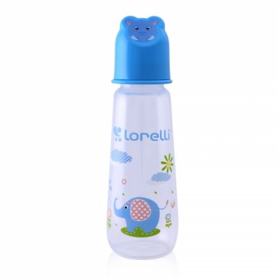 Kojenecká lahvička Lorelli 250 ml s víkem ve tvaru zvířete BLUE