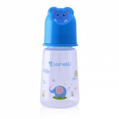 Kojenecká lahvička Lorelli 125 ml s víkem ve tvaru zvířete BLUE