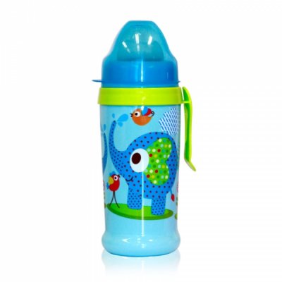 Netekoucí láhev Lorelli s pítkem 360 ml, klip ZOO BLUE