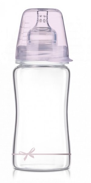 LOVI Skleněná lahvička 250 ml Diamond Glass - mašlička - růžová
