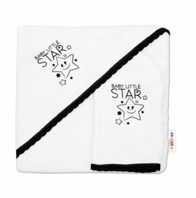 Dětská osuška s kapucí + žínka Baby Little Star, Baby Nellys, roz. 80 x 80 cm - bílá