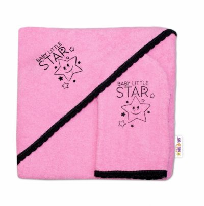 Dětská osuška s kapucí + žínka Baby Little Star, Baby Nellys, roz. 80 x 80 cm - růžová