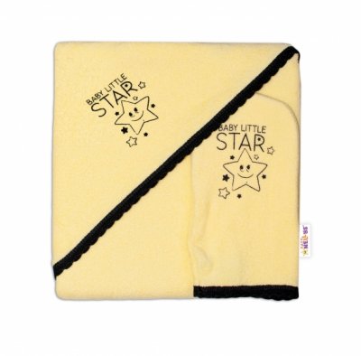 Dětská osuška s kapucí + žínka Baby Little Star, Baby Nellys, roz. 80 x 80 cm - žlutá