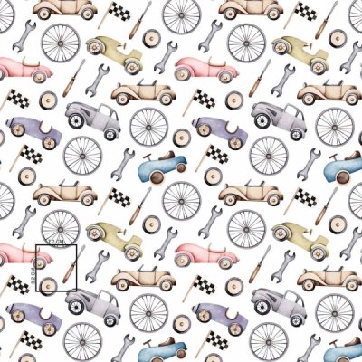 Baby Nellys Kvalitní bavlněná plenka - Tetra Premium, 70x80 cm - Retro Car, bílá
