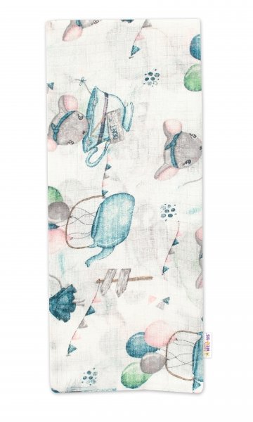 Kvalitní bavlněná plenka Baby Nellys Tetra Premium, 70x80 cm - Myška, bílá/modrá