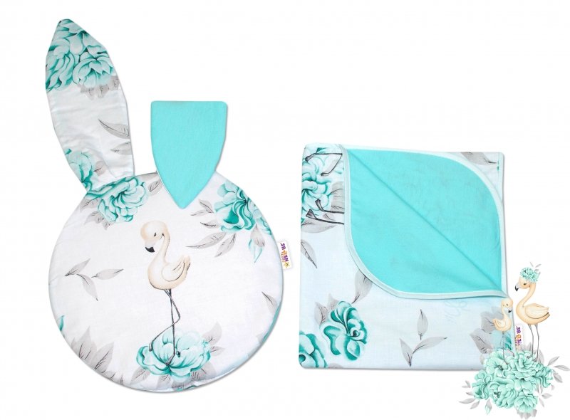 2-dílná sada do kočárku Baby Nellys jersey s oušky, Plameňák - mátová