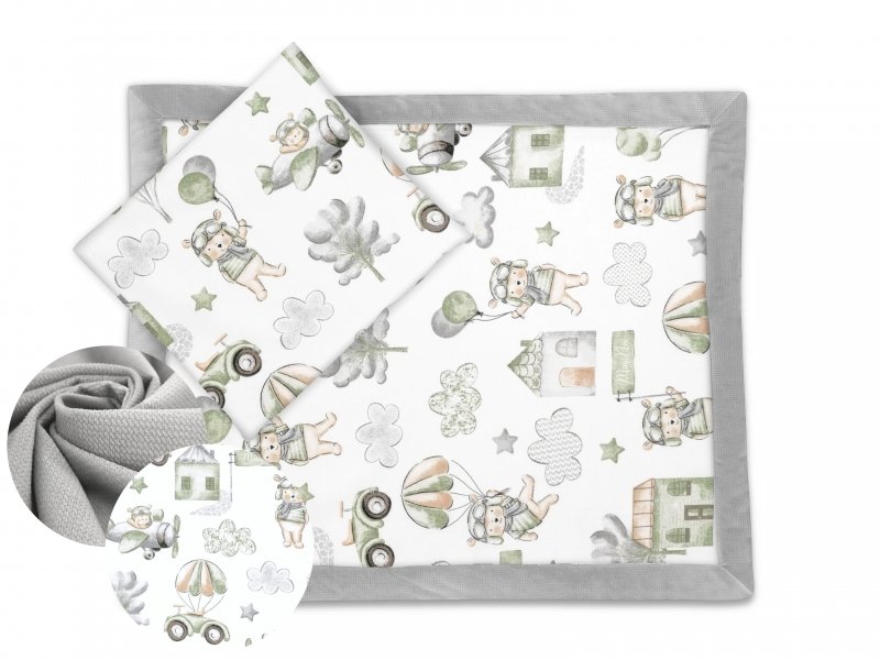 2-dílná sada do kočárku bavlna + Velvet, Piloti - olivová/šedá