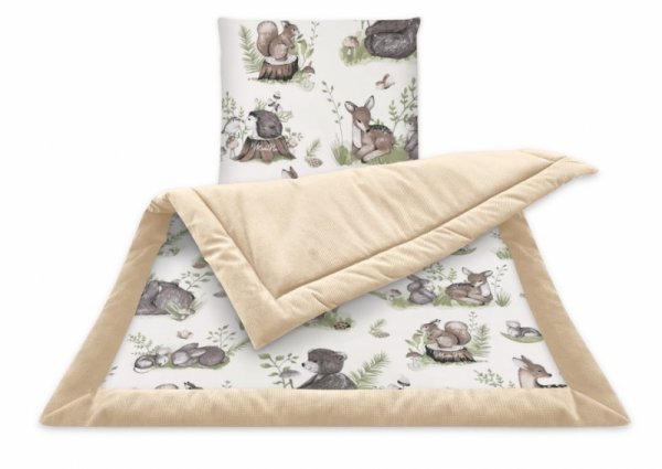 2-dílná sada do kočárku bavlna + Velvet, Pohoda v lese NATURAL - béžová/ecru