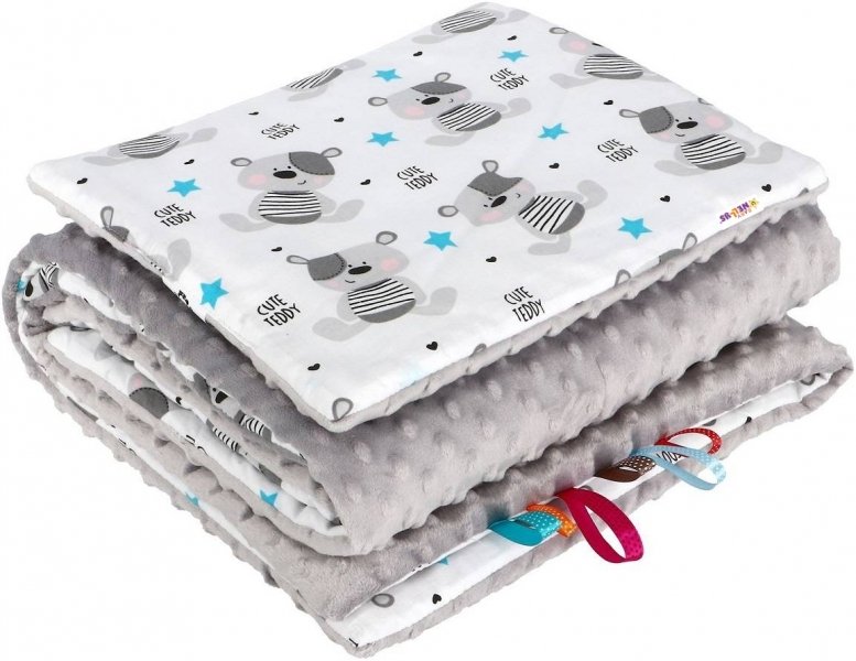 2-dílná sada, oboust. dečka + polštářek s Minky 100x75cm Cute Teddy, Baby Nellys,bílá/šedá