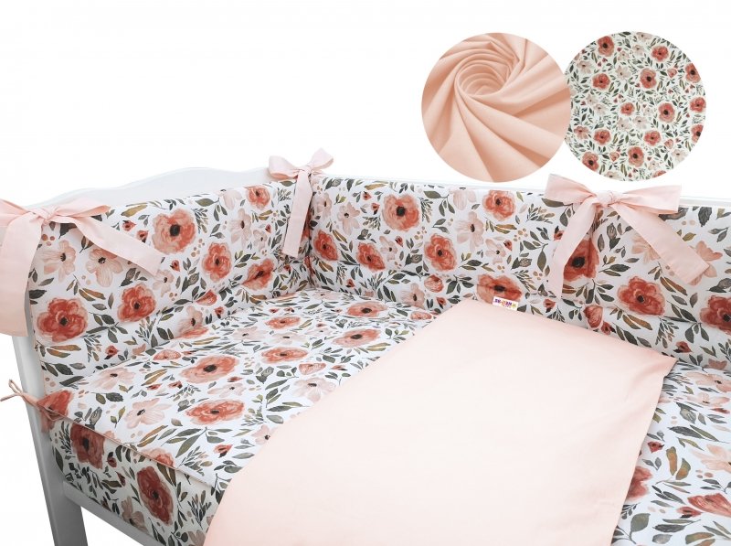 3-dílná sada mantinel s povlečením Baby Nellys - Begónie, meruňková - 120x90