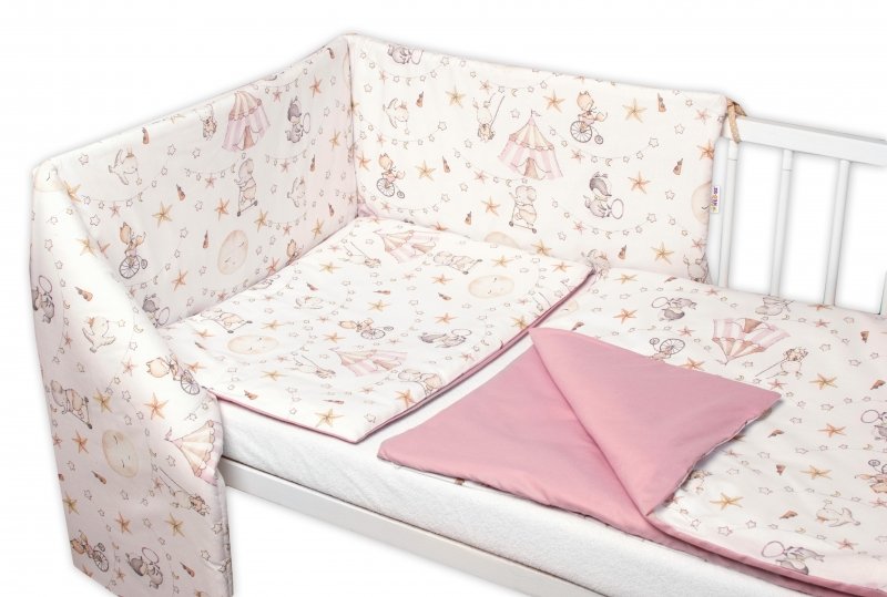 3-dílná sada Mantinel s povlečením Baby Nellys Cirkus, pudrově