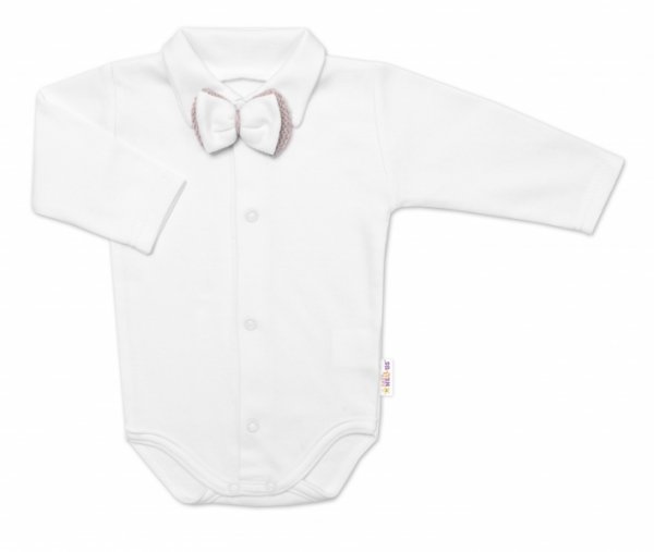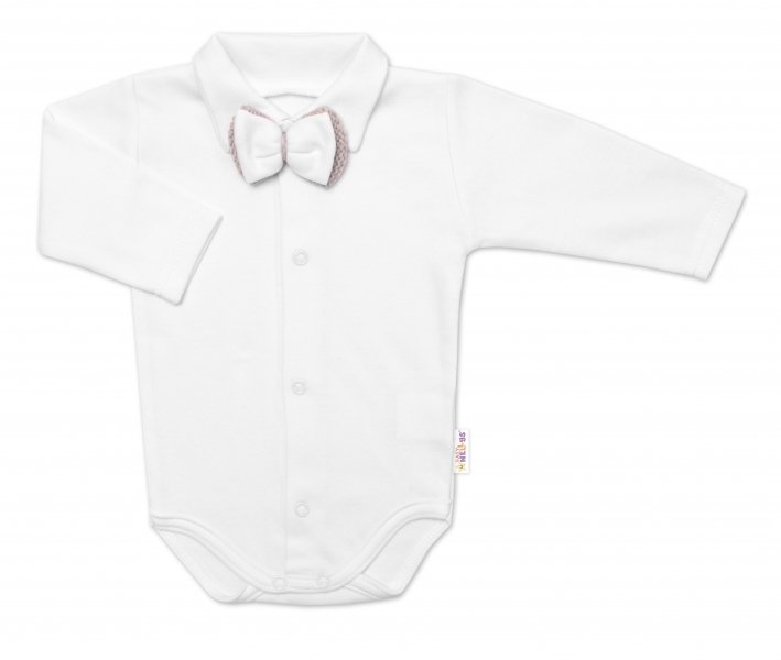 Svetřík má zapínání na knoflíky, body zapínání na cvočky, motýlek je upevněný na tenké gumičce.