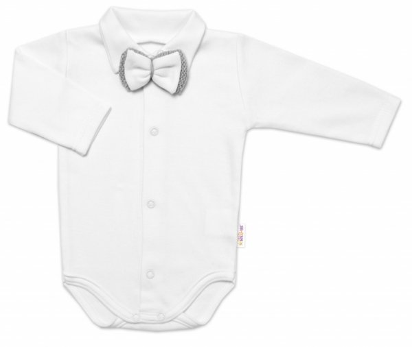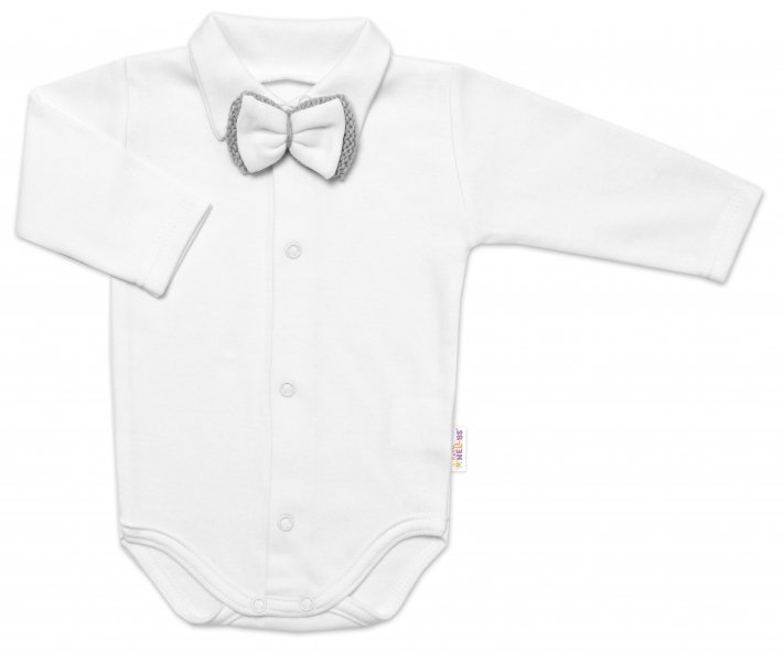 Svetřík má zapínání na knoflíky, body zapínání na cvočky, motýlek je upevněný na tenké gumičce.