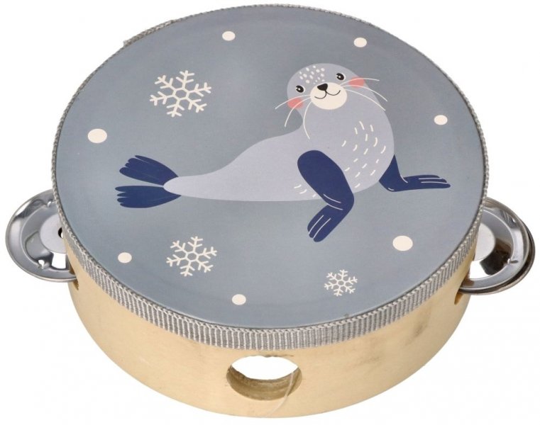 Adam Toys Dětská dřevěná tamburína Tuleň - šedá