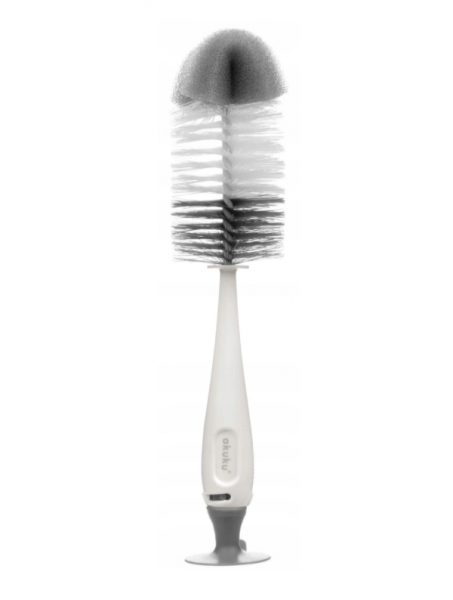 Akuku Kartáč na láhve s houbičkou a přísavkou - šedý