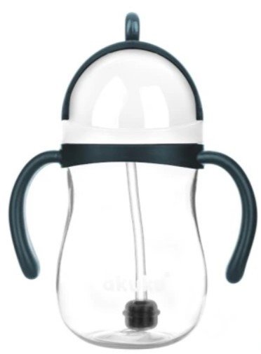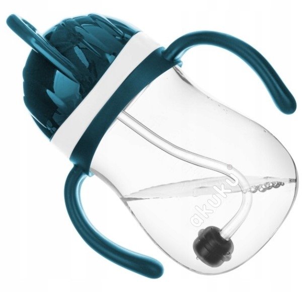 Akuku láhev s brčkem a závažím - bílo/tyrkysový, 280 ml