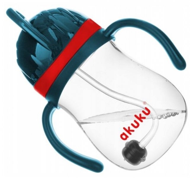 Akuku láhev s brčkem a závažím - modro/červený, 280 ml