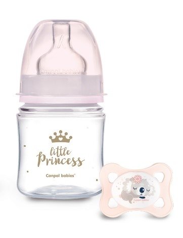 Antikoliková lahvička 120ml + dudlík set Canpol Babies, Mini Girl - Little Princess