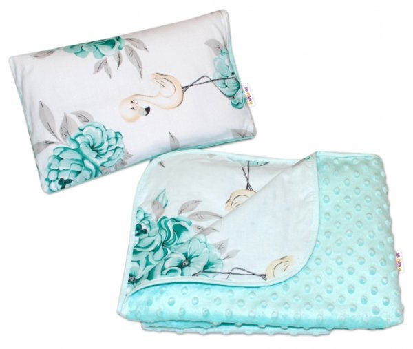 Baby Nellys 2-dílná sada do kočárku s minky - plameňák - mátový
