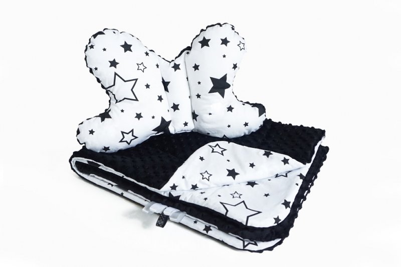 Baby Nellys 2-dílná Sada do kočárku s minky s motýlkem - hvězdičky, minky - černá/bílá