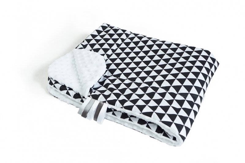 Baby Nellys 2-dílná Sada do kočárku s minky s motýlkem - trojúhelníčky, minky - černá/bílá