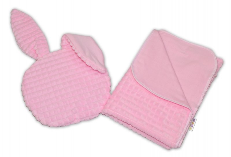 Baby Nellys 2-dílná sada do kočárku s minky s oušky, Zajíček -růžová