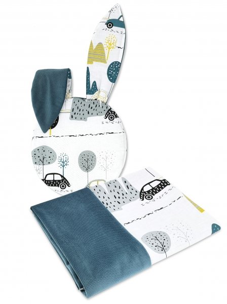 Baby Nellys 2-dílná sada do kočárku s oušky - Auta v aleji, zelená