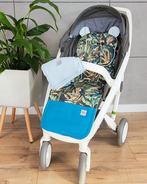 Nová oboustranná vložka do kočárku. Díky nepromokavé látce chrání před nečistotami a lze ji snadno otřít vlhkou utěrkou. Zadní část vložky je bavlněná VAFEL, zatímco přední část je vyrobena ze 100% organické bavlny PREMIUM s originálním potiskem. Má gumičku, díky které vložka neklouže. Systém otvorů pro pásy je kompatibilní a hodí se k většině kočárků a autosedaček.