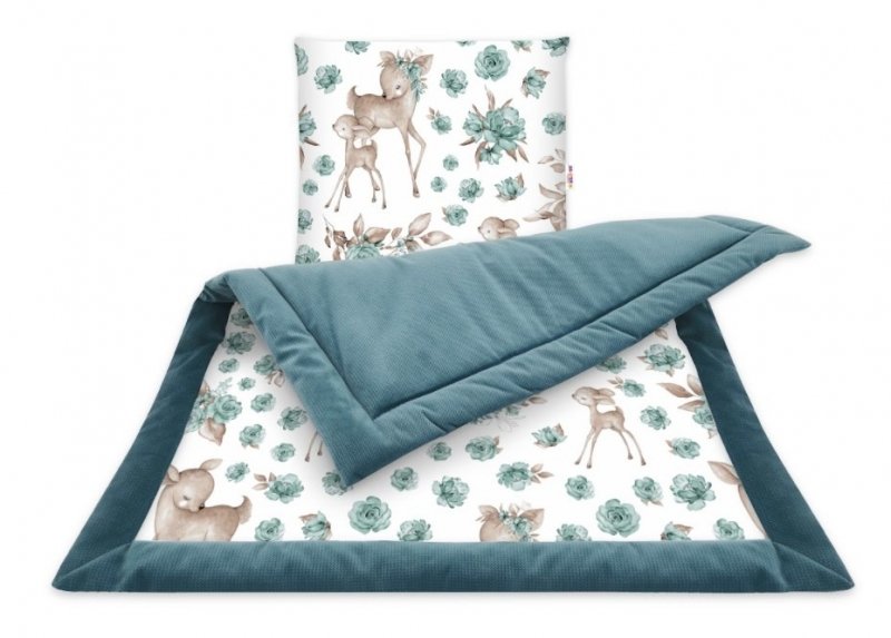 Baby Nellys 2-dílná sada do kočárku Velvet, srnka a růže, mátová